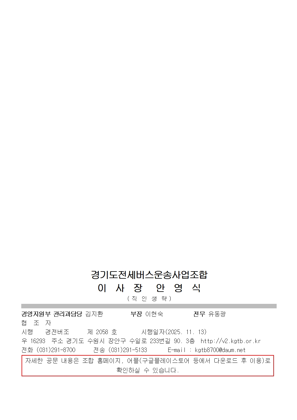 여객자동차 운수사업법 일부개정법률안 국회 본회의 통과 알림 페이지 정보 작성자 운영자 조회 1853회 작성일 2025-11-13 04:36:02 목록 본문 다운로드 : 여객자동차 운수사업법 일부개정법률안 국회 본회의 통과 알림.hwp 다운로드 : 여객자동차 운수사업법 일부개정법률안 국회 본회의 통과 알림.pdf 이전글2025년도 대표자 해외연수 세부일정 알림 2025-11-13 다음글겨울철 교통사고 예방을 위한 안전관리 철저 요청 2025-11-14